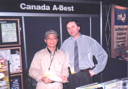 At Vancouver Comdex2000 computer exhibition from left, Yan Lai, Aleksandr Zakharov. Intel Company exposition is somewhere from one side.